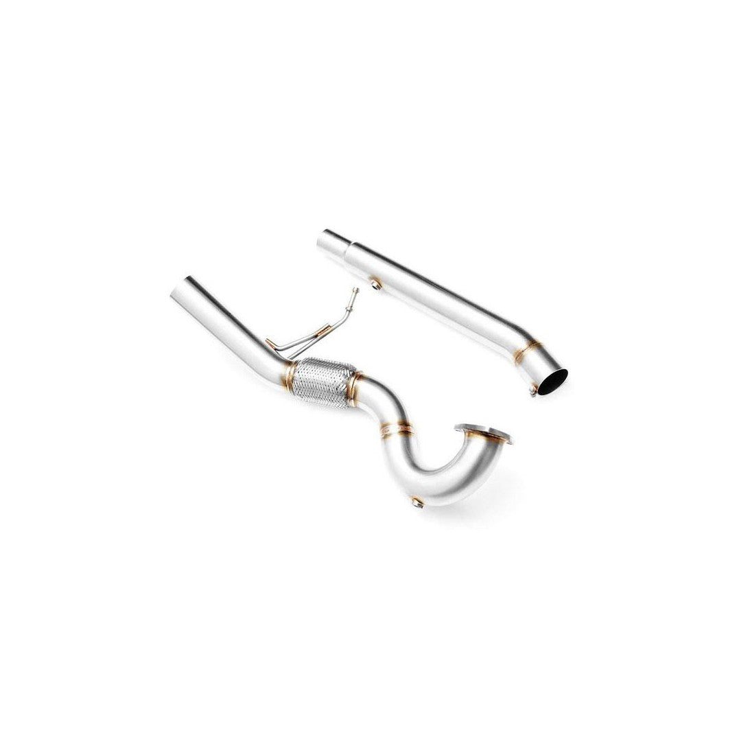 Downpipe on valmistettu kokonaan korkealaatuisesta ruostumattomasta teräksestä (T304, X5CrNi18-10, 1.4301, AISI 304, 0H18N9). Jokainen elementti on kehitetty CNC-tekniikalla. Tuotteella on 24 kuukauden valmistajan takuu.